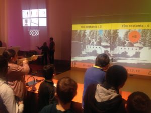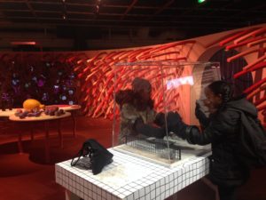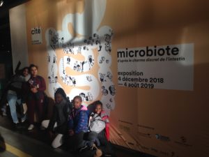 1ère étape à l'expo sur le microbiote   Nous apprenons comment fonctionnent nos intestins et à quoi servent les gentils microbes qui l'habitent. Il y a plusieurs ateliers interactifs où les élèves peuvent notamment manipuler des rats de laboratoire ou simuler un passage aux toilettes!