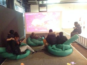 À 12h nous allons au planétarium contempler les étoiles de notre galaxie. Le film qui explique comment s'orienter grâce au ciel dure une trentaine de minutes. Les élèves sortent émerveillés mais affamés et prêts à en découdre avec leur pique nique.