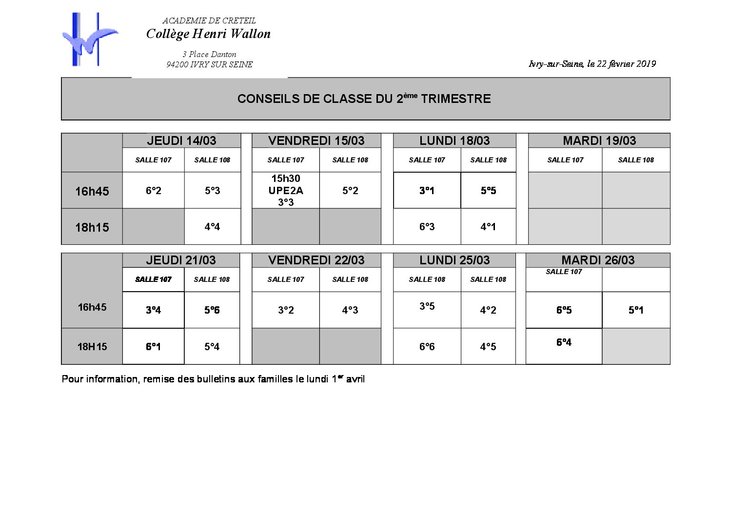 2ème trimestre : les conseils de classe