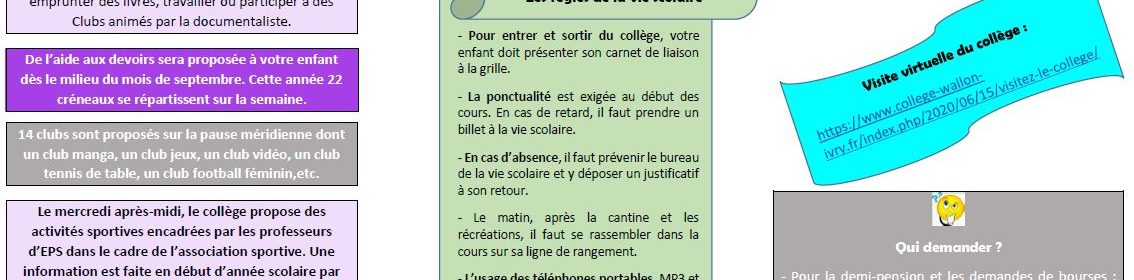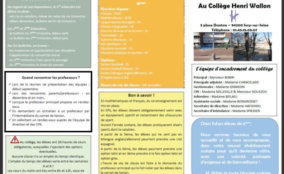 La rentrée en 6e au Collège Wallon : les infos Plaquette de rentrée en 6ème au collège Henri Wallon Images liées: