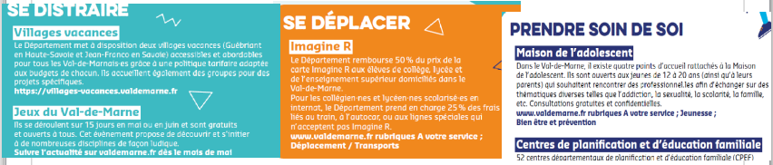 Guide des services et d’aides en direction des 14 à 18 ans Aide financière, orientation, carte Imagine R, santé, loisir, le conseil départementale du Val-de-Marne propose des aides et des services aux jeunes de 14 à 18ans. Images liées: