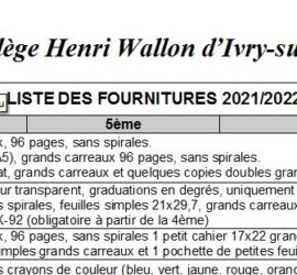 Voici la liste des fournitures pour la rentrée 2021/2022 (cliquez sur le document pour télécharger) –>lien vers la visite virtuelle du collège