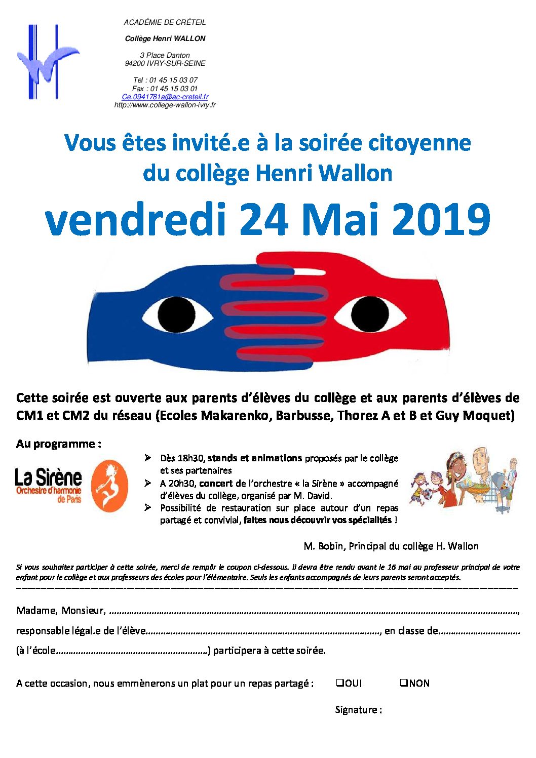 Cette soirée est ouverte aux parents d’élèves du collège et aux parents d’élèves de CM1 et CM2 du réseau (Ecoles Makarenko, Barbusse, Thorez A et B et Guy Moquet)