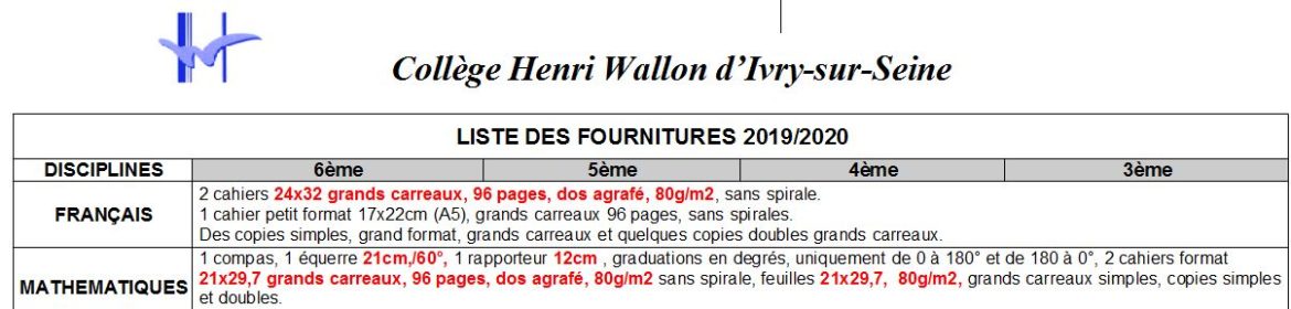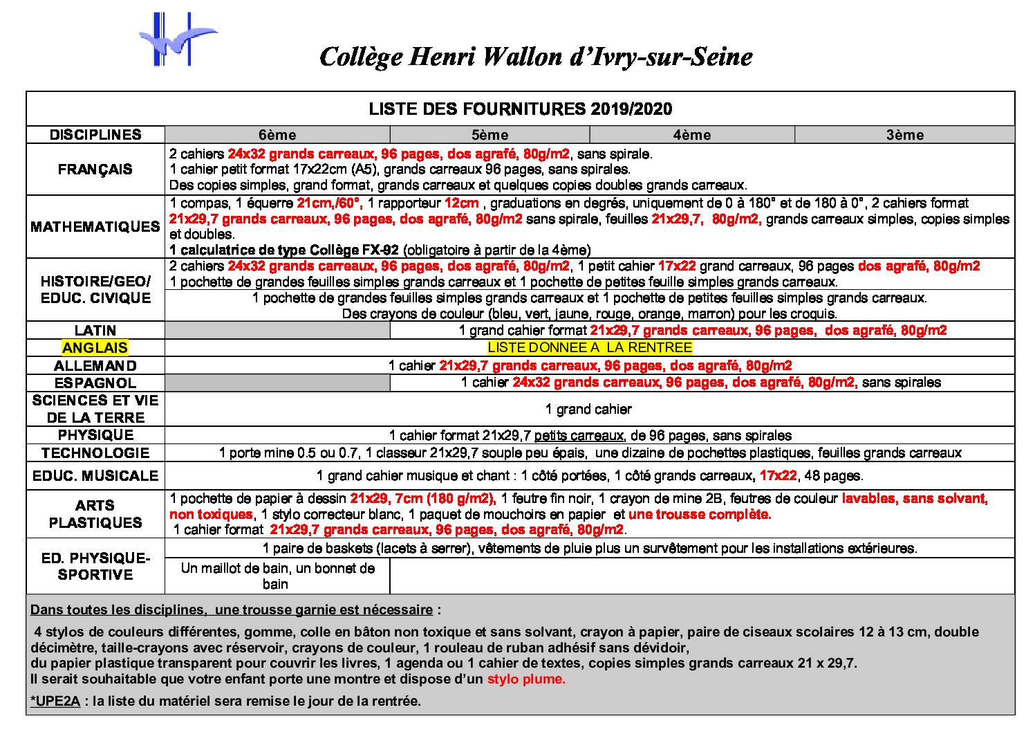 Liste de fournitures 2019/2020 Voici la liste de fournitures pour la rentrée 2019. Cliquez sur l'image pour télécharger la liste. Images liées: