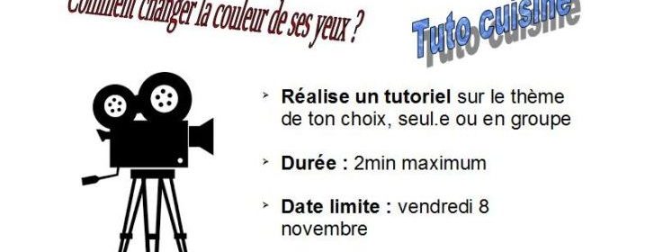 Participe au concours de film du collège. Pour cela, réalise une video tutorielle (un tuto)  sur le sujet de ton choix  : dessin, chant, maquillage, technique en sport, résolution d'équation... bref le choix est grand.