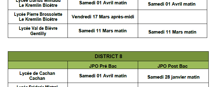 Calendrier des Journées portes ouvertes district 6 (Ivry/Vitry)