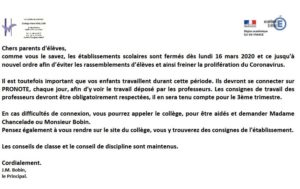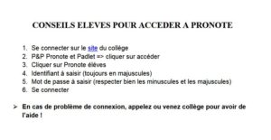 Pour les cours et les exercices, les enseignant.e.s du collège communiqueront uniquement par Pronote.